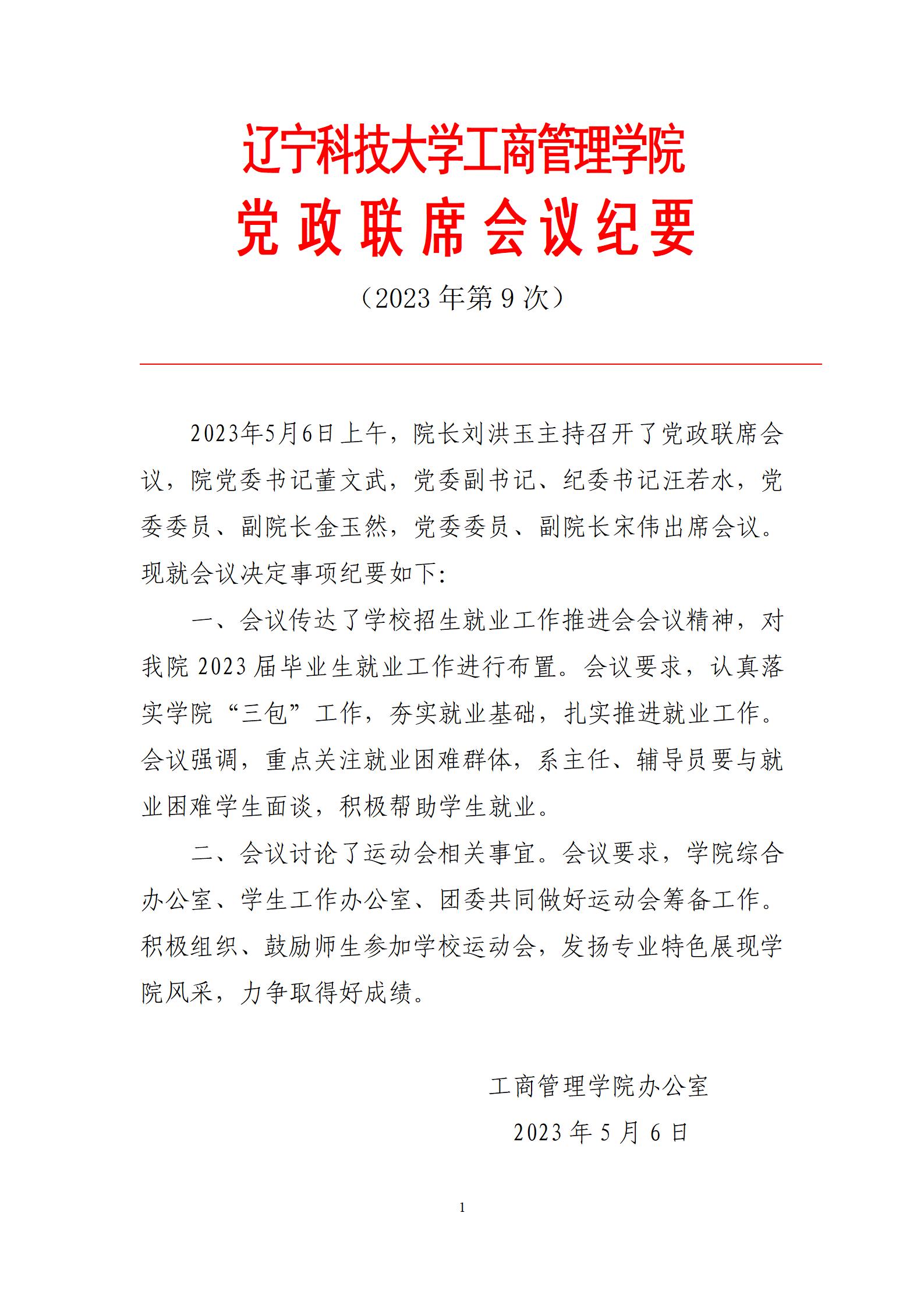 半岛.体育(中国)官方网站工商管理学院党政联席会议纪要(2023年第9次)