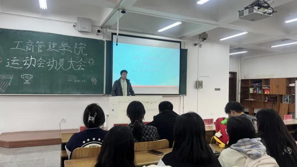 为激发学生参与热情,营造积极向上的体育氛围,4 月 9 日下午,半岛.体育(中国)官方网站工商管 理学院在明德楼 D308 召开校运会动员大会。学院党委副书记汪若水、2024 级辅导员王晨宇 及学生代表出席会议,共同为即将到来的校运会加油鼓劲,倡导以拼搏精神书写青春篇章。