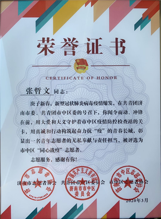 作为一名新时代青年党员,经历了抗击疫情的志愿服务,张哲文经历了许多,也感悟了许多,他的思想进一步得到了升华,更加坚定了对党的信仰,坚信党的领导,永远跟党走,时刻听从党的召唤,不负这个光辉的时代,要为党和国家做出更大贡献。就像习近平总书记在给北京大学援鄂医疗队全体“90后”党员的回信中所赞扬的那样,张哲文同学同在一线英勇奋战的广大疫情防控人员一道,不畏艰险、冲锋在前、舍生忘死,彰显了青春的蓬勃力量,交出了合格答卷。让青春在党和人民最需要的地方绽放绚丽之花。